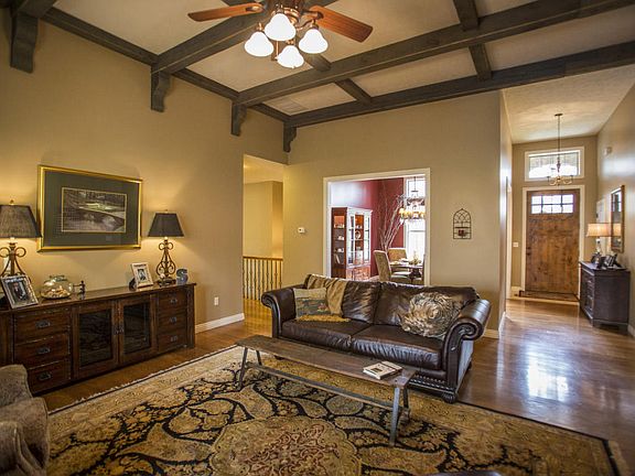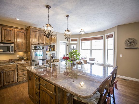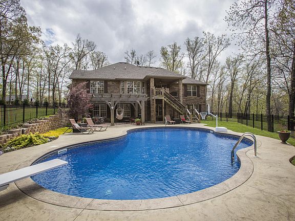 Beautiful, all brick/stone finished walkout basement home has a gorgeous salt water pool with high efficiency heat on a private 3 acre wooded lot surrounded by other high end homes only 5 miles from Rivercut Golf Course. The home is stunning in every way, from the large granite island overlooking the Hearth Room, to the extensive ornate wood beams throughout the home. The sprawling finished basement has 2 Bedrooms and 3 distinctive living areas to allow for large groups to gather together or for family members to have their own space. In addition to the formal living, gourmet Kitchen & Hearth Room, the main level has extensive hardwood flooring, 3 Bedrooms, large Laundry Room and a walk-in Pantry.