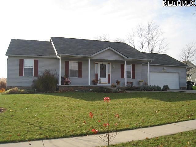 Fantastic price for this newer 3 bedroom, 2 full bath ranch in a wonderful neighborhood! Built in 2004 this home offers an open great room, kitchen and dining area. Large great room with plenty of room to entertain. Nice breakfast bar in the kitchen and spacious dining area too! Spacious master suite with private full bath. Bedroom 2 has double closets! Laminate flooring through most of the home. Convenient 1st floor laundry room with utility sink. Huge unfinished basement is great for storage or could be finished. 2 car attached garage and nice size lot add to the appeal of this home! Great price!