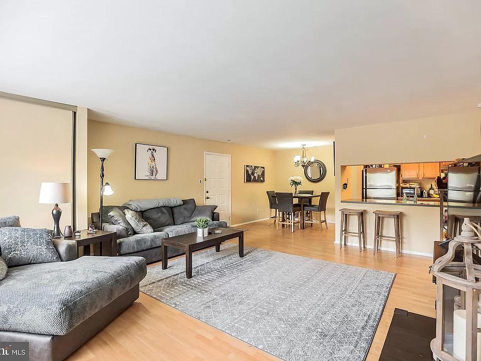 Spacious condo in desirable Woods II in Cherry Hill. Largest 2 bedroom 2 baths SOUGHT AFTER FIRST FLOOR boasting hardwood floors in living room and dining area. Carpet in bedrooms, Lovely fully equipped eat-in kitchen with granite counters and tile floor. Master bedroom has a full bath . Second bedroom with a closet. Perfect home in perfect location, near restaurants, The Promenade at Sagemore mall, houses of worship and shopping . Owner pays water, Renter responsible for gas/electricity and sewer.