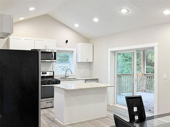 Modern cabinetryPrivate deckHardwood floorsUpdated kitchenStainless appliancesGranite countersVaulted ceilings