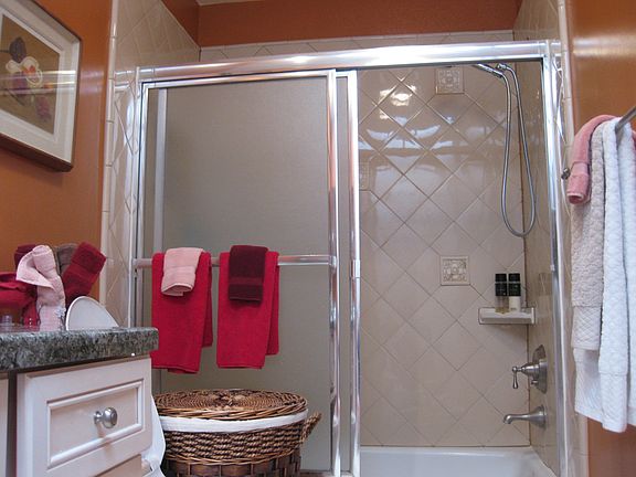 Welcome to your new turnkey home! This beautifully remodeled two-bedroom, one bath Monterey Manor is nestled inside a quiet and serene neighborhood in Laguna Woods. The charming entry patio is perfect for entertaining friends and has a large double door storage closet. Stepping through the stained-glass Dutch door you're greeted with 10' smooth ceilings and stunning real oak wood floors. The expanded cook's kitchen is light and bright from the oversized skylight. Add in the granite counter tops and custom cabinets with plenty of storage, and you'll really enjoy cooking in this kitchen. Each of the two bedrooms features true Berber carpet and custom designed closets. The sizable bathroom features a custom vanity cabinet with granite top, tiled tub/shower and an expansive skylight. For your convenience a Maytag stack washer/dryer has been installed into the hall closet. Everything about this home is soothing and comforting. Just add your furnishings and bring your clothing. You're home!