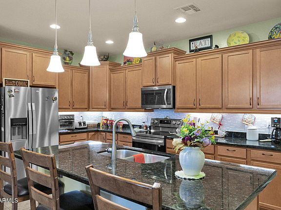 Welcome home! This amazing 3 bedroom 2 bathroom property features a fantastic open floor plan with plenty of room to entertain. The kitchen is perfectly upgraded with newer stainless steel appliances and a large island. Grand formal dining and a great room truly creates function and flow throughout. This home has been meticulously maintained and it shows. Corner lot gives you additional space and privacy as you relax in your resort styled backyard which includes an inviting pool, turf and landscaping that will catch your eye. Great storage and parking in a three car tandem garage with built in cabinets. Low interest rate assumable mortgage rate possible with qualified buyer and acceptable terms. This is a hidden gem in San Tan Valley!