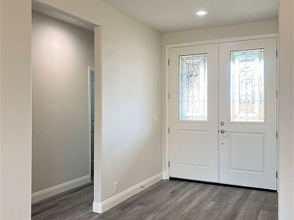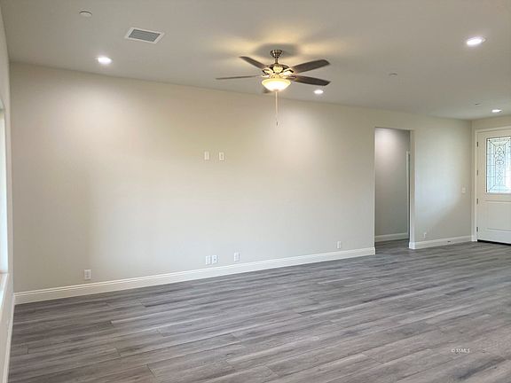 This home will provide 2,227 sqft. With form & function in mind, amenities include quartz counter tops in the kitchen & bathrooms. Vinyl plank flooring throughout the home. Towering 9ft ceilings throughout the home. The ceiling fans add comfort to all bedrooms, and option room. The split floor plan provides privacy with a master suite featuring a double vanity and custom walk-in tiled shower, walk-in & privacy closets. The front option room has the potential to be built as 5th bedroom, den or office. There is an indoor laundry room. 3 car garage has automatic openers for the insulated roll-up doors. R-38 insulation in the conditioned attic and R-19 in the 2 x 6 walls. Ground mounted AC unit Seer 14. Tankless water heater. Energy efficient windows & lighting. Fire suppression system in the ceiling. A fully trussed covered patio helps to keep it cool. Block wall with 4ft metal side gate. Solar system.