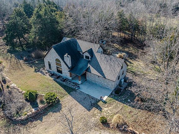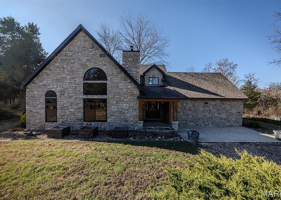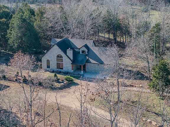 Step into a home that feels like a dream. This one-of-a-kind 4 bedroom, 3 bath custom-built residence is situated on over 8 peaceful acres, offering true country living with French-countryside charm. Frame Constructed with full masonry stone, this stunning 2-story home features a breathtaking 26-foot living room ceiling and an impressive 16-foot rock fireplace with a wood-burning insert, creating a warm and dramatic focal point. The chef’s kitchen is designed for both beauty and function, showcasing soapstone countertops, a copper farmhouse sink, gas range with pot filler, custom cabinetry, and a spacious walk-in pantry. A thoughtful split-bedroom design provides versatility with two bedrooms on the main level and two bedrooms upstairs, offering the option for a primary suite on either floor. Additional features include solid 1/2” Hickory flooring throughout, Anderson custom windows, a dedicated home office, generous walk-in closets, wood ceilings and accents, and abundant natural and ambient lighting that enhances every room. This remarkable property blends luxury, craftsmanship, and acreage to create a home unlike any other. A must-see for buyers seeking privacy, style, and timeless character.