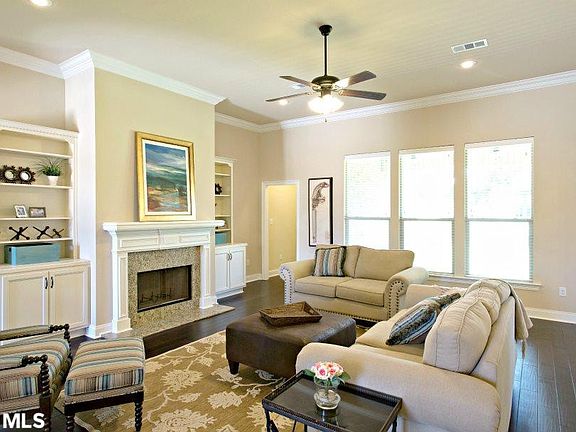 This former Model Home is a stately 4 bedroom 3 bath favorite built on a large corner lot! Upgrades Added: Cabinet Upgrade Package, Side by Side Refrigerator, Sprinkler System, Blinds for Windows Package, Interior & Exterior Fans and Recessed Lights! Special Features: Dream kitchen featuring over-sized center island, slab granite counters with under-mount sinks throughout, stainless appliance package, wood floors in living room/halls, 16" ceramic in wet areas, crown molding, recessed and pendant lights, custom tiled shower and separate soaking tub in master, gas fireplace with granite profile, built in bookshelves, brick and stucco exterior, 30 year shingles, sod, landscape and more! Energy Efficient Features: Vinyl low E MI windows, radiant barrier roof decking, high efficiency Carrier HVAC and central gas heating system and more! GOLD FORTIFIED CERTIFIED HOME!