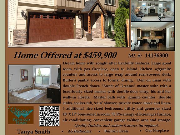 View website: http://20254sw93rdavenue.AgentMarketing.com - Dream home with sought after livability features. Large great room with gas fireplace, open to island kitchen w/granite counters and access to large wrap around rear covered deck. Butler's pantry access to formal dining. Den on main with double French doors. Upstairs features the ultimate large master with double-door entry, his and her walk-in closets. Master bath with granite counter double sinks, soaker tub, 'rain shower' head shower, private water closet and linen. 3 additional nice sized bedrooms, utility and generous sized 18' X 17' bonus/media room. 95.5% energy efficient gas furnace, convenient garage with shop area and storage. Quality finishes and custom features throughout.