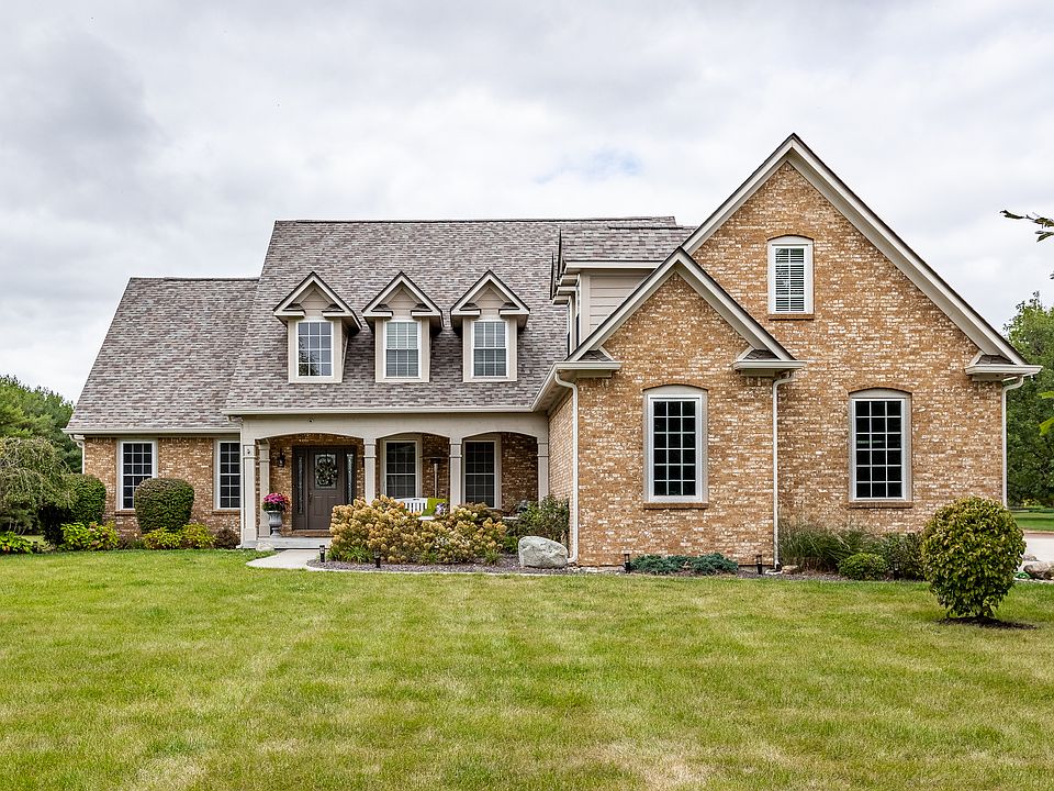 Stunning 5-bedroom, 4.5-bath home on a picturesque 5-acre lot. The vaulted great room with large windows offers breathtaking views of the private landscape. The spacious primary suite on the main floor includes a walk-in closet and en-suite bath. Upstairs, find 3 bedrooms and a versatile loft space. The finished basement is an entertainer's dream, featuring a stone bar, theater area, gym, 5th bedroom, and full bath. Enjoy relaxing by the double-sided fireplace or outdoors by the heated saltwater pool. Complete with a 3-car garage, mini barn, and more-country living with city conveniences nearby.
