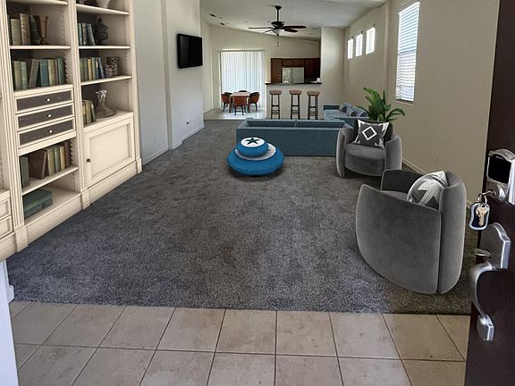 Like new! This beauty is settled in the high demand Blue Horizons neighborhood! A well-manicured landscape welcomes you to the main entrance. Upon entry, the vaulted ceilings and open floor plan encourage you to make yourself at home! Neutral paint palette, and plush carpet compliment the great room. Perfect sized kitchen offers a breakfast bar, plenty of cabinets, and built-in appliances. With the right configuration this space is perfect for entertaining! Fabulous main bedroom suite is split, ensuring a private space and includes an immaculate ensuite boasting a dual sink vanity w/ custom lighting. Low-maintenance backyard features a covered patio perfect for relaxing evenings after a busy day. There's something for everyone in the Blue Horizons Neighborhood, from softball and basketball to playgrounds, several well-lit walking paths, to simply relaxing or barbecuing under large ramadas. Owner pays for HOA fees, Pets allowed with an additional deposit of $250 per pet. Convenient online portal for rent payments and maintenance requests.