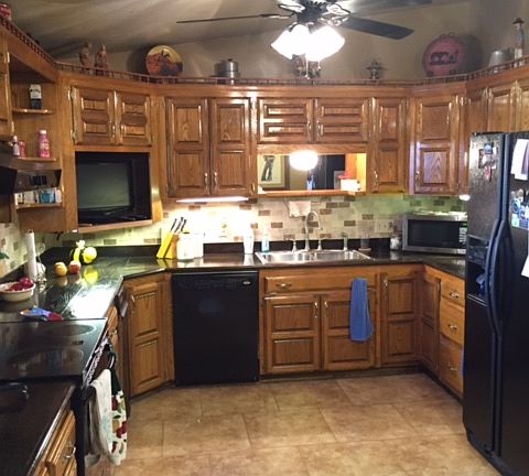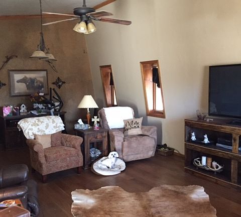 1800 sq ft. 3bd, 1 3/4 ba, master bedroom walk in closet., all new wood and tile floors. kitchen remodeled. new red oak counter tops, all the inside has been repainted except for 2 extra bedrooms, both bathrooms have been remodeled. Beautiful western style home sets on 5 ac mol. at dead end of community. Out of city limits, good roads. 5 min from town. pasture is good, our horse loves it. Several horse pens and good fence and posts. Lots of trees on property. Quiet and secluded. No one bothers you. Fenced property. Huge deck out of the master bedroom faces the east. Have your morning coffee there and watch the sunrise while watching your horses play. Front porch faces the West. 2 car attached garage and beside home is a 2 car carport, storm cellar in garage. Shop with tractor and hay shed, garden storage shed. Plenty of room for your RV and/or your atv toys. 150,000.00