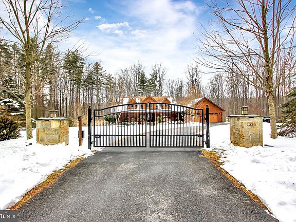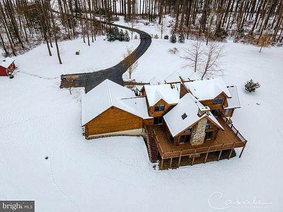Quality is what it is all about with this custom-built log home. This impressive home is nestled on over 15 acres affording peace and privacy, a nature lover's dream, in the heart of Fallston. Kuhn's Brothers Kiln-dried log home masterfully designed with no detail overlooked. Solid maple natural hardwood flooring spans the open floor plan on the main level. The gourmet kitchen with Bosch double ovens and Jenn-Air downdraft cooktop offers a spacious island with seating, open to the dining area, allows cooks to join in while entertaining. Breathtaking great room! Take note of the magnificent floor to ceiling flagstone fireplace. Soaring ceiling showcases the exposed beams and wall of windows for breathtaking views. Main level owners' suite will not disappoint. Cathedral ceiling, private exit to the wraparound deck, custom closet and luxurious spa bath with Air-Jet massage tub and oversized tile shower. Maple hardwood staircase leads to the upper level loft with overlook affording awesome views. Two generously sized bedrooms and a full bathroom complete the upper level. Pre-insulated foundation walls, ready for framing, span the 1746 sq ft of the lower level. Rough-in for a full bath and wet bar are in place along with a rough in for fireplace or pellet stove. Walk-out level leads to the paver patio. Oversized 2 car garage, Amish-built shed. Equally impressive, the exterior of the home offers a full front porch and wraparound deck. Extensive hardscape includes bluestone walkway, flagstone columns and pondless water feature simulating a mountain stream. Take a hike on the nature trail and relax by the stream. Forestry program w/tax incentive. **Dual zone Geothermal Heating/Cooling** Gated entry**15.4 Acres to let nature surround you! ***See documents for additional information.