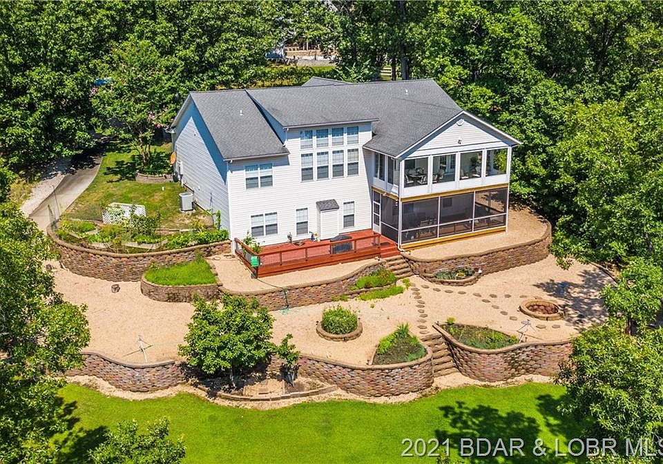 Turkey Bend treasure, minutes from Margaritaville Lake Resort! 5 bedroom home on 3.3 acres with a 10x28 slip with lift in the community dock. Formal and casual dining surround the remodeled kitchen with gas range, granite, custom cabinetry and stainless steel appliances. The shelves that surround the gas fireplace stretch across the entire living room. 336 sq ft three seasons room on main level overlooking lake. Main level master suite in a private wing, plus two more bedrooms on the main level. Lower level family room has a wet bar, another gas fireplace, and an entire wall of built-ins. Plenty of room for a pool table or ping pong! The three seasons room plus a screened deck below bring the outside in. Over 900 square feet of storage. The 2-car garage is oversized. Paved RV parking. New Leaf Filter gutter system. Privacy with convenience to hospital, boutique shopping, lakefront and parkway restaurants. See detailed feature list attached.