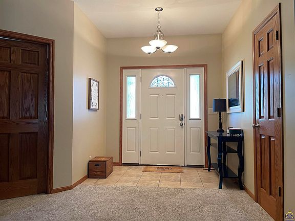 HUGE ranch home in the Deerbrook edition. You are within walking distance to Timmerman Elementary school, the Middle School, the High School and the Flint Hills Technical College. You also have easy access to the walking trail as well as the disc golf course at the Tech College. The home itself is large and very well maintained with a brick exterior. You walk into a large living room with the kitchen hidden from view but just off to the side. All 3 main floor bedrooms are down the same hallway. The doors are solid wood to help you relax at night. The master has a deep walk in closet and a large master bathroom with separate water closet. The basement is finished and wide open for entertaining, letting the kids run and having a nice family getaway for movie nights. A 4th bedroom and additional bathroom are also in the basement. A portion has been left unfinished to hideaway seasonal decorations. A cedar closet is available in the storage area. Walking in from the garage area you immediately have access to a washer and dryer room for work and play clothes. The kitchen and pantry is also right off the garage for easy unloading of groceries. The low maintenance backyard features a deck and play area for the kids within a fenced in area. The front of the house is beautifully landscaped and cared for by the current homeowners. Maintenance again is easy seasonally as the plants chosen are perennial. In summary - an amazing house to become your families next Home.