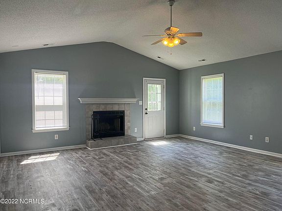 This home has been freshly painted and new flooring throughout the house. The home has a large living room with a wood burning fireplace, vaulted ceilings, and three spacious bedrooms, two full size bathrooms. This cozy eat-in kitchen that has plenty of cabinet space, all appliances; dishwasher, microwave, range & a refrigerator. Pet are negotiable with owner approval. This home is close to everything Jacksonville has to offer and less than 6 miles to MCB Camp Lejeune main gate. No Smoking Pet Friendly with owner approval
