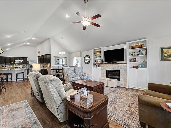 Come home to this "better than new" home in Pecan Lakes Estates in Navasota! Updates galore throughout this beautiful, immaculate 4 BD /2 BA home in popular golf course community. Split bedroom plan situated on one of the larger lots in the subdivision. Open layout with many updates throughout including new oversized tile shower in the primary bathroom, custom bookshelves and electric fireplace in the living area, ceiling fans added in all bedrooms, recessed lighting added in the living area, new plumbing fixtures in both bathrooms and kitchen, painted bathroom cabinets, new granite countertops in the bathrooms, new backsplash in the kitchen, kitchen hardware added, window seat added, and water softener added. Tankless water heater, 3 car garage, sprinkler system, and privacy fencing. Golf course and community pool/clubhouse available for use with a Pecan Lakes membership fee. Easy access to Houston and Bryan-College Station!