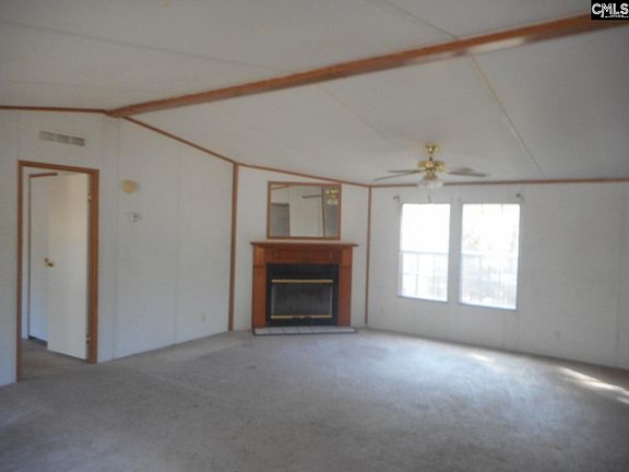 Four bedroom, two bath split floor plan mobile home. Living room with vaulted ceiling and fireplace that is open to the kitchen. Owner's bedroom has private bath with double sinks, separate tub and shower.