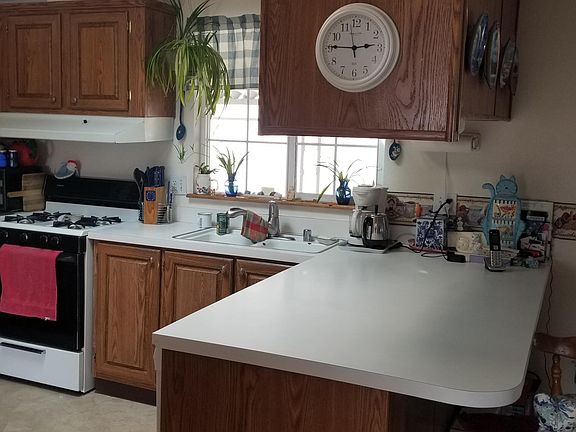 This spacious doublewide manufactured, 3 bedroom, 2 bath, 1456 sq ft home is in great location in Thunderbird Mobile Estates, a senior park. Great location just a short distance to churches, stores, restaurants, Post Office, library, park and senior center. The home has an open floor plan with large living and family rooms. The kitchen has a pantry, gas range, and breakfast bar. The primary bath room has both a soaking tub and shower stall. There is a roomy carport with protective windbreak and also a shed and fenced yard. Park approval is required Make your appointment to view this lovely home today.