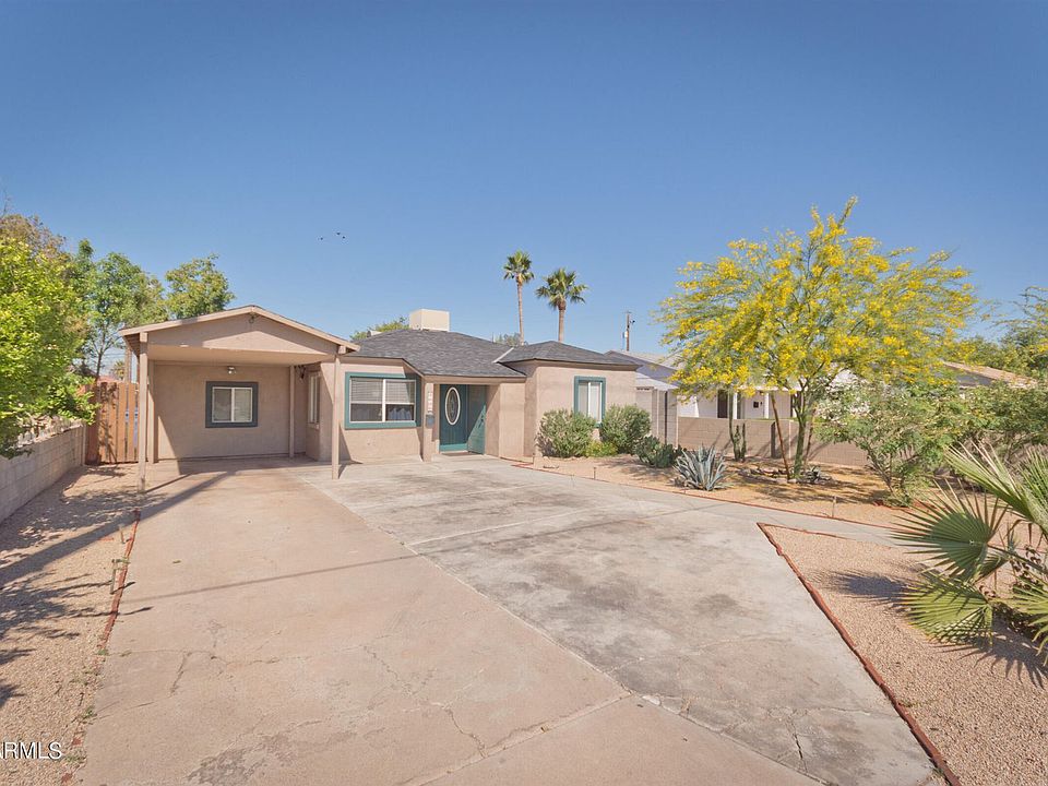 Charming home with energy updates right in the heart of Phoenix. Close to freeways, schools, shopping, entertainment, and hospitals. This house has it all! Upgrades to this beautiful home include leased solar panels, newer roof, new RV gate and block wall fence (2016), new AC unit/duct work (2019), new hot water heater (2019), and all new copper wiring (2015). Kitchen features newer white cabinets with soft close hinges installed in 2015, gas range, stainless steel fridge, and Samsung washer & dryer. Electric bill currently averages less than $40 per month year round. Backyard features a new block wall fence with an RV gate, covered patio, grass area, and detached storage shed. Ample space for entertaining in the backyard or for storing your toys. Completely turnkey home!