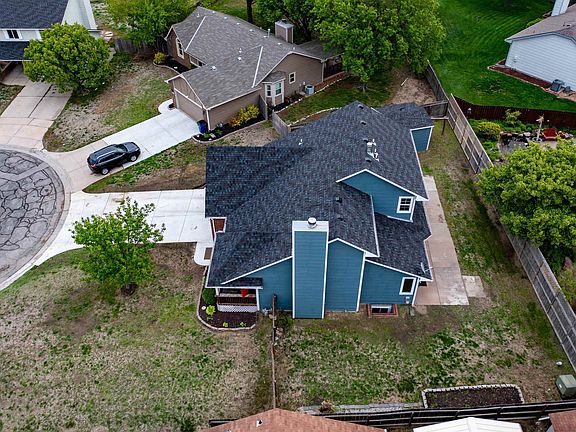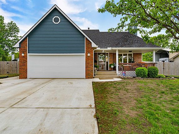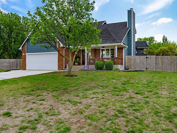 If you’re looking for a 4 bedroom, 3.5 bath home with a primary bedroom on the main floor, you’ve found it here. This well-maintained, updated home with custom features situated on a quiet cul de sac will check all the boxes. It’s in an ideal location with easy access to all that Wichita has to offer. Super close proximity to McConnell Air Force Base and major aircraft employers! Enough about location; let's talk about the absolute charm of this property, starting with the perfect blue exterior paint color! You will love the welcoming covered front porch that’s perfect for your morning and evening beverage of choice. Enter through a warmly-stained front door where you will be in awe as you gaze up at a unique loft library space that overlooks the living area that also has a wood burning fireplace with a gas starter. The bright, sunlit kitchen offers gorgeous counters, a stunning curved peninsula, and storage for days. It’s perfect for gathering. The dining area off of the kitchen also provides access via sliders that lead to a generous patio that spans the back of the home, perfect for backyard entertaining. Upstairs, just off the reading loft, there are two additional bedrooms and a bath. In the lower level, there’s more living space with a large family room and fourth bedroom (both with egress windows), along with the third full bath. The sellers have loved living in this home for 20 plus years and were the second owners. In recent years, they’ve made significant updates not limited to the following: siding and exterior paint (2020); new windows and sliding door (both with transferable warranty), roof replaced, garage doors and opener (2022); new carpet on the main and second floors, kitchen counters updated to granite, and air ducts and returns cleaned (2023). This house is beyond being move-in ready! Schedule your private showing today!
