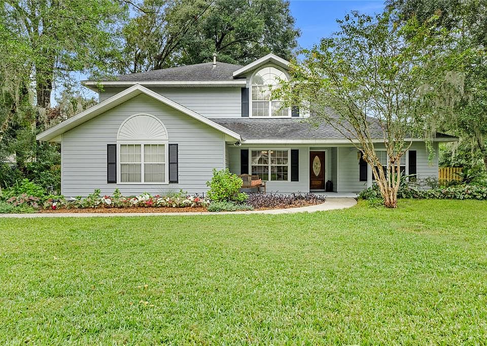This beautifully maintained home, nestled on a tranquil cul-de-sac, is ready for you to move in! Featuring 5 spacious bedrooms, 2 full bathrooms, and a half bathroom, this residence offers plenty of room for family and guests. The primary suite, conveniently located on the first floor, includes a luxurious Jacuzzi tub for your relaxation. The family room boasts soaring ceilings that fill the space with natural light, and is complemented by elegant wood floors and a cozy fireplace. French doors lead from the family room to a generously sized screened back patio, perfect for enjoying the outdoors all year round. The fenced backyard, adorned with mature landscaping, provides a private oasis for relaxation and play. And the large area of brick pavers alllows for additional, low maintenance outdoor living space- perfect for gathering friends. The spacious kitchen has plentiful counter space and cabinetry and flows seamlessly into the breakfast nook, while a formal dining room adds an extra touch of elegance for special occasions. Parking is a breeze with a side-entry garage and ample driveway space, ensuring plenty of room to play. Located in the highly sought-after school zones of Chiles, Kanapaha, and Buchholz, this home is perfect for families looking for a welcoming and convenient community. This neighborhood is walkable to the library, Tipples, CVS/Walgreens, and a medical emergency facility and less than 2 miles from Publix and restaurants. Don’t miss the opportunity to make this charming house your new home!