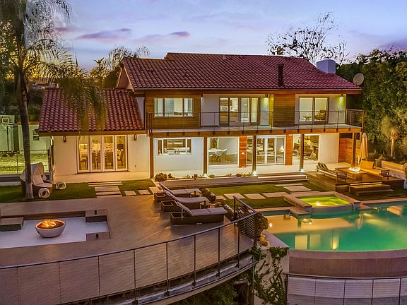 Privacy. Tranquility. Ever-changing Vistas. FURNISHED/UNFURNISHED. SHORT TERM/LONG TERM. Offering unprecedented luxurious living, this marvelous Bel-Air home is an absolute must see for those who enjoy the finer things in life. Boasting captivating FULL FRONTAL PANORAMIC views of Stone Canyon Reservoir. OVER 2,000 SQUARE FOOT PRIVATE DECK. This sensational home will take your breath away the moment you step inside. Set over two levels, there are three bedrooms on the upper level and one bedroom on the lower level. A real gem in this home is the master with a fireplace and a well-appointed ensuite, sitting area and balcony. Soaring vaulted ceilings run overhead with large windows perfectly framing those enviable views. The expansive gourmet kitchen sits in the heart of the home and features sweeping countertops and stylish cabinetry. A large island and modern stainless steel appliances add practicality and elegance to the space. You'll love to host guests on the breathtaking outdoor entertaining terrace complete with a built-in barbeque and bar, fire pits that create a focal point, and a luxurious infinity edge pool.