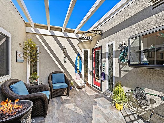 Experience the perfect blend of comfort and elegance in this beautifully upgraded, single-level New Cordoba end unit with no one living above or below. Every detail has been thoughtfully designed for modern living. Over the past three years this home has gone through major renovations and updates. You’ll find throughout the home; wide-plank French Oak luxury vinyl flooring, crown molding, designer baseboards, and custom top-down/bottom-up blinds, creating an elegant, cohesive look. The home features newer dual-pane, vinyl-clad windows, new lighting fixtures, and a new glass front door. Stay comfortable year-round with 4 new Zone controlled Energy efficient split AC/Heat units and five ceiling fans strategically placed throughout the home. Thoughtfully designed with generous storage options and a convenient stack washer/dryer. The Four Seasons Room (approx. 280 sq. ft.) is a true highlight, built with “Conservaglass Select with Stay-Clean Technology” to keep it cooler in summer and warmer in winter. This light-filled space includes two ceiling fans, its own heating and cooling unit, and custom blinds, making it perfect for relaxing or entertaining in any season. The kitchen has been completely reimagined and offers a chef’s dream: Custom cabinetry with self-closing drawers and doors, pull-out spice rack and trash bins, quartz countertops, a porcelain farm sink, stainless steel appliances, “Tuscany”-inspired porcelain tile backsplash, tray ceiling with recessed lighting, 2 pendant lights and a custom dining room cabinet with glass-front doors and built-in pantry Both bathrooms have been tastefully done. The guest bathroom features granite countertops, a tub/shower combo with glass doors, grab bars, and recessed lighting. The main bathroom offers a walk-in tiled shower with a built-in seat, granite countertops, and grab bars for safety and convenience. The main bedroom is a serene retreat with its own Energy efficient climate control split unit, ceiling fan, custom built-in storage, and framed mirrored closet doors. The guest bedroom also features mirrored closet doors and a dedicated heating and cooling unit. Every inch of this home reflects quality craftsmanship, modern comfort, and timeless style — ready for you to move in and enjoy. Located in the dynamic Laguna Woods Village-Southern California’s premier 55+ community, where you’ll have access to resort-style amenities, scenic views, and a wealth of social opportunities.