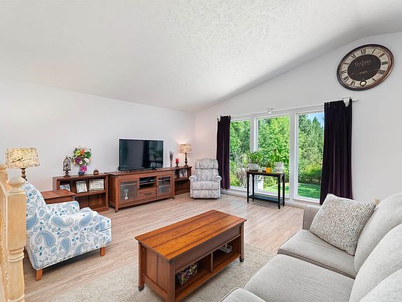 This original owner's home on nearly ½ an acre is just 12 minutes north of Wandermere shopping and restaurants. Built by Condron Homes in 1996, there is pride of ownership throughout! Terrific updates include: new roof in 2024, new siding on lower portion of exterior on all sides in 2024, new exterior paint in 2024, new gas hot water heater in 2023, new garage door in 2023 and new sliders to deck and patio in 2020. Spacious living room has vaulted ceilings and the kitchen boasts stainless appliances, reverse osmosis water filtration, eating bar and pantry. Main floor utilities are super convenient and all appliances stay! You'll love the primary suite with newly tiled shower and walk-in closet. Daylight walkout basement features large family room and full bathroom with extensive tile work. Active radon system. Septic system was just inspected. Beautiful backyard is a private oasis with lush green lawn, beautiful trees and landscaping. Don't miss this gem close to Deer Park and North Spokane.