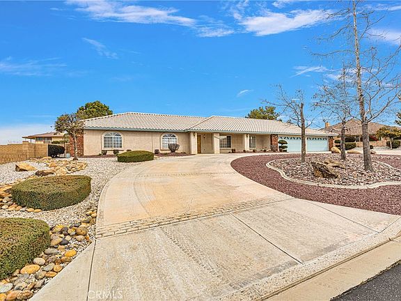 Warm, contemporary modern property in the prestigious gated Quail Run Estates of Apple Valley, CA. This private, 3,136 SqFt, architectural gem is privately secluded behind mature landscaping, quietly set back from the street. Set upon a 21,727 SqFt lot with an irrigation system and custom desert landscaping. A paver-lined circular driveway leads to this striking home. Inside the home the huge kitchen is complete with recessed lighting, built-in oven and stove top, a lighted pantry, an extra long breakfast bar and a separate oversized eating area. The large adjacent family room features a brick fireplace with a raised hearth. All new carpeting and padding has been installed in 2024! In the front area there is a formal living room and dining room bathed in natural sunlight from the large picture windows. The expansive primary suite includes an enormous walk-in closet and luxurious, double vanity, en-suite with separate soaking tub and shower. Also on this side of the house there are 2 more extra large guest bedrooms and a full bathroom. On the other side of the home, there is a gigantic bedroom next to a full bathroom that can easily be converted into a second primary suite. All bedrooms have walk-in closets. The laundry room has a utility sink and tons of storage. The entertainer's backyard features a generously sized covered patio that has a NEW ROOF and a sprawling area for seating, cooking or even adding a hot tub. The 4 car oversized garage has a workbench. Impressively crafted with a second to none level of detail, tailored for the most discerning buyer. CHECK OUT THE ATTACHED 3D VIRTUAL TOUR!!