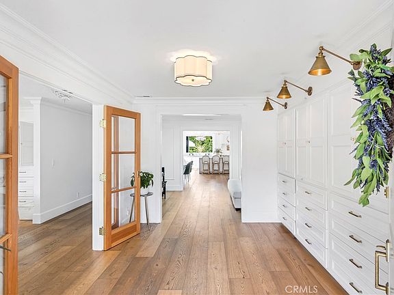 This charming home is located in one of the best kept secrets of Newport Beach, nestled behind Back Bay in an equestrian neighborhood with oversized lots, quiet streets, with Back Bay access. The grand entry features an extra wide dutch door, wide plank hardwood floors and plenty of natural light. A large downstairs home office overlooks the neighborhood, with ample storage. The secondary downstairs bedroom features double French doors opening to the garden and a luxurious guest bath with oversized bathtub. The custom kitchen overlooks the newly renovated backyard through beautiful bifold windows. Features include vaulted ceilings, custom molding throughout, custom wood cabinets, panel ready appliances, a gorgeous La Cornue stove, sub zero refrigerator and quartzite counters.