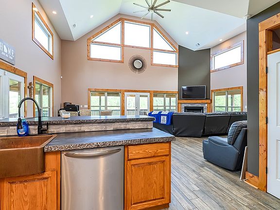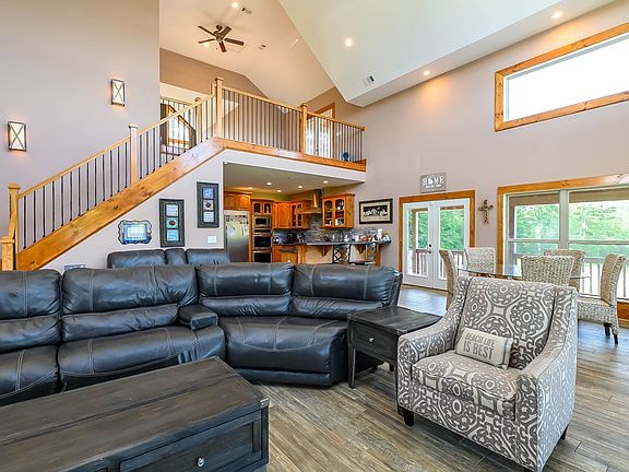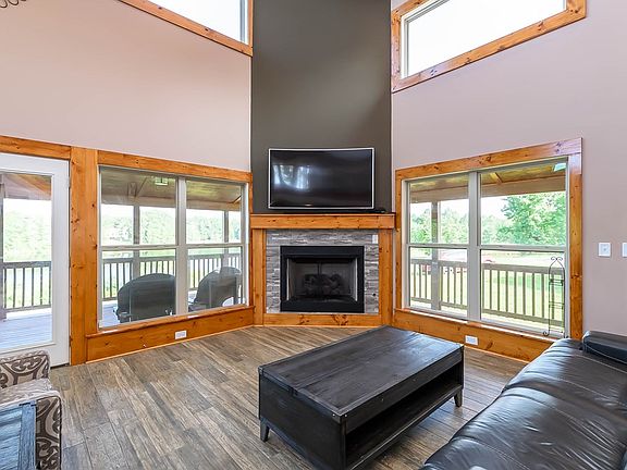 Modern yet rustic custom-built home built in 2016 features 4408 sq ft with 2 BR 1 BA guest cottage (handicap-accessible), 4-car garage, in-ground saltwtr pool overlooking a private lake.5 BR 5 BA open floor plan, 2 levels of living with master in loft. wrap-around deck w/ceiling fans, Master has balcony overlooking pool & with lake views. Main level has kitchen with concrete counters, huge great room, 2 laundry rooms - main & downstairs. Country estate living on the lake. Private 2-acre pond.