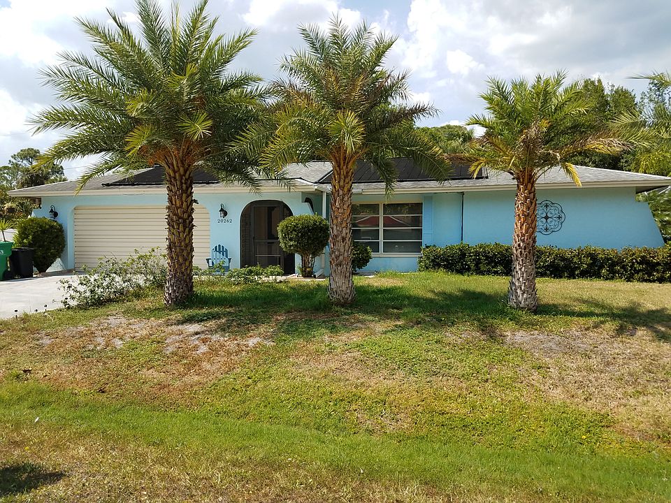 Welcome to your Florida Oasis! This partly remodeled home is perfect for snowbirds and first time home buyers alike. Centrally located in the heart of Port Charlotte you will find this large corner lot with privacy fencing, stunning landscaping, and ample room to park all your toys. Once inside you will find a split floor plan allowing either side of the house to accommodate a living room/dining room combo and the kitchen located in the center of it all. The beautiful kitchen was redone in 2018 with new flooring, new cabinets, granite, and accent ceiling lighting. Either side of the kitchen provides pool access with pocket sliding doors allowing the home to be nicely opened up. Both bedrooms are ample in size and the master bathroom was also redone in 2018 including a new vanity and gorgeous shower tile. The greatest feature of this property is the remarkable nearly 1,200 sqft lanai that was professionally renovated from top to bottom in 2018. This includes a new screen/cage, paver flooring, and a pool/spa resurface with a total cost of $18,000! The sellers loss is certainly the buyers gain on this one. The pool has solar panels plumbed and the spa has its own brand new, never used, electric heater! This property does not require flood insurance, includes all appliances, and has a 2015 water heater. Seller is willing to separately negotiate all furnishings within the home and will consider contributing towards the buyer's prepaids and closing costs depending on the overall offer.