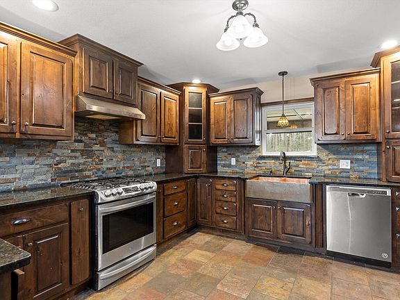 This beautifully designed 4-bedroom home offers a warm and functional layout beginning with an inviting living room featuring engineered hardwood floors and a stone gas-log fireplace. From the living room, a doorway leads to the dining area and the custom kitchen, which includes slate tile flooring, granite countertops, custom cabinetry, stainless steel appliances, and a striking copper sink. Just off the kitchen, the spacious laundry/mud room provides access to the attached 3-car garage. The private primary suite features 2 walk-in closets, a double vanity, and its own access to the covered deck area, which steps down to a large open deck that surrounds the above-ground pool. The additional bedrooms are well-sized, with one offering a bonus space ideal for an office or playroom. Outdoor features include an expansive deck and pool area to enjoy as desired, an outbuilding workshop with space for hobbies. Call today for your tour!