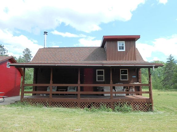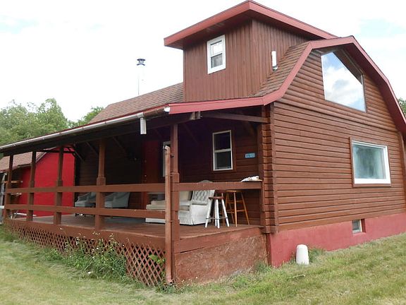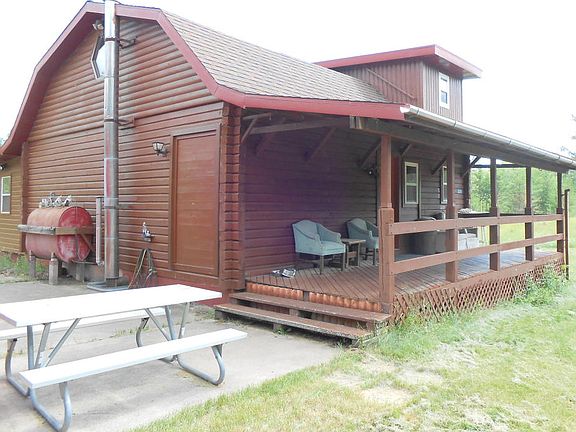 Home/Cabin "Furnished" 2Bd, 1Ba Open floor plan, constructed of 6' sq. logs. Tongue & groove pine, insulated interior walls. Sauna, garage, basement is poured concrete with insulated walls, and 80 gal. Hot Water heater, 8x28' covered deck, all located on 5.75 landscaped acres.