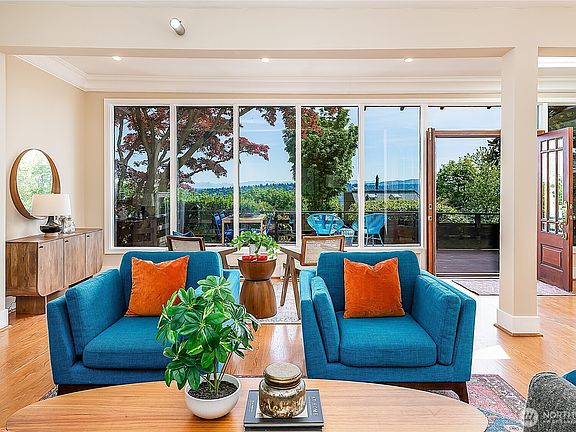 This is a Forever Home! Easy entrance with 2 car-parking off the alley. Gorgeous views from full length deck, the living room, and even from the dining room. Even when Seattle is grey this house is suffused with light! 5 bed rooms and 3 baths, including a primary with ensuite bath and walk-in closet. You can walk to popular Mt Baker Park and there are also multiple paths that lead down to Lake Washington for wonderful summer swimming and biking. Elegant box beam ceiling and leaded glass hutch in dining room. Comfortable Kitchen opens to a lounge TV room. Plus a big basement, shop, and garage. Great floor plan for many styles of living. This is the premier block of Mt Baker neighborhood.