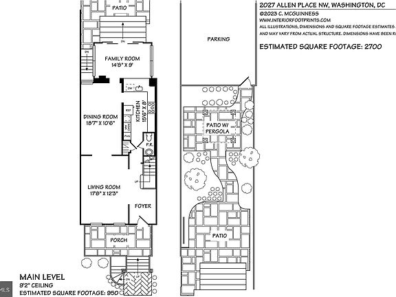 Price Improvement! Ultra Stylish three level, four bedroom, three and one half bath home in sought the after Kalorama neighborhood. Ideally located and surrounded by some of the most picturesque sights, scenery and architecture that this City has to offer. This home has been tastefully renovated and has exquisite, timeless design. It has Traditional definition for example exhibited in the large formal dining room, but the large archways on the first level allow for the Openness of a more Contemporary feeling. The ceiling height on the mail level is over 9 feet. The floors on the main level are white oak and are stained in dark walnut. The large windows and glass front door in the facade allow the sunlight to stream into the front of the home as you will see in the Living room and Primary en suite photos or when you visit. The grand stairway that leads to the second level is also stained in dark walnut. The large luxurious primary suite is sun-filled and has a large wall of closets. No expense was sparred in the primary bath with its natural stone floor, walls and shower. It has a freestanding acrylic flat bottom soaking tub and an attractive large skylight overhead. The home has a large attic currently used for storage but could possibly be converted for more living space in the future. The lower level is a renovated English Basement with a bedroom, a large newly renovated full bath and a combination dining, kitchen and living area. It is not connected to the Upper level. It is open to the Street in the front and the expansive 53' X 19' foot flagstone patio in the rear. The Outdoor space is breathtaking! It is a true OASIS from the Hustle Bustle of City Life! Beyond the patio there are two parking spaces for vehicles in the rear. The Sellers just had a new 200 AMP electrical panel installed, a new water heater, a new dishwasher in the main kitchen. The HVAC units are 4 and 7 years young. The Walk score in 92. You do not have to use your car for daily errands. This home is the perfect mix of Contemporary elegance, high end finishes and preservation of its original architectural features.