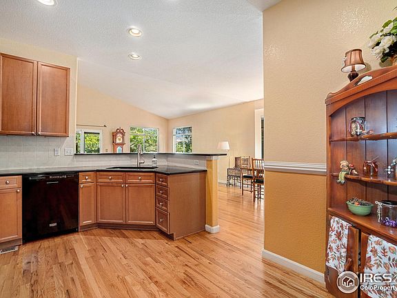 Pride of ownership shines in this 3-bedroom, 2-bathroom Ranch home located on a private cul-de-sac lot in west Loveland. This property offers a peaceful setting with mature shade trees and a large backyard that backs to a walking path and creek, providing both privacy and natural beauty. Interior features include an open floorplan with vaulted ceilings and tons of natural light. The primary suite is spacious with an updated bathroom and walk in closet. A second bedroom features a built-in Murphy bed, providing functionality and space. The third room is perfect for an office or can be made into a private bedroom. The kitchen includes updated appliances and beautiful quartz counter tops atop plenty of cabinetry. The lot is a standout feature-tucked away with no through traffic, abundant trees, and direct access to outdoor recreation. Enjoy the combination of a private setting with convenient access to nearby amenities, schools, walking trails, parks and the beautiful Rocky Mountains. NO Metro Tax. See it today!
