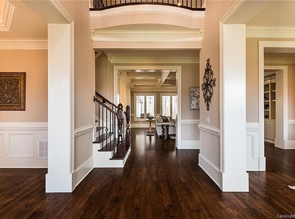 Elegant custom home in Gated community. At over 10,500 sq ft under roof this is Hands Down the best value in Providence Downs South! Move in with instant equity or use it to update to your liking. Unrivaled neighborhood amenities & top school district. Sought after open floor plan with massive kitchen. Newly refinished hardwoods and fresh paint throughout. Master on main has it's own fireplace with access to covered porch. 6 more plus sized bedrooms all with private baths. 2 private offices, 3 bonus rooms and 2nd family/living room on 2nd floor. Large +/- 1 acre private wooded lot with room for a pool. Oversized 3 car garage. Original owners have downsized and are including a $12k appliance package of your choice.