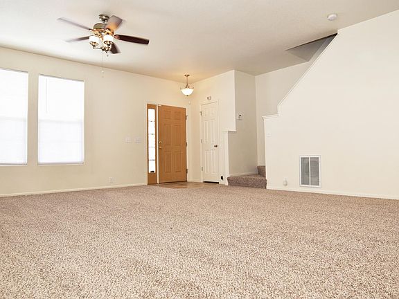 Spacious 3-bedroom end-unit townhome with central air. Generous living room with mountain views plus & dining area. Massive eat-in country kitchen with large windows, pass-thru to dining area & laundry. Upstairs includes roomy master bedroom w/vaulted ceiling, large walk-in closet plus private full bath. Two additional bedrooms plus 2nd full bath on upper level. Ceiling fans throughout, plus upgraded light fixtures. Great park & playground at entrance to complex. Minutes to I-25 & Fort Carson, close to shopping & more! 1+ year lease. Only dog or cat allowed, max 2, under 20 lbs. No exotics, e.g. snakes, iguanas, monitor lizards (small birds, fish, turtles are OK).