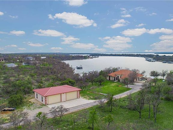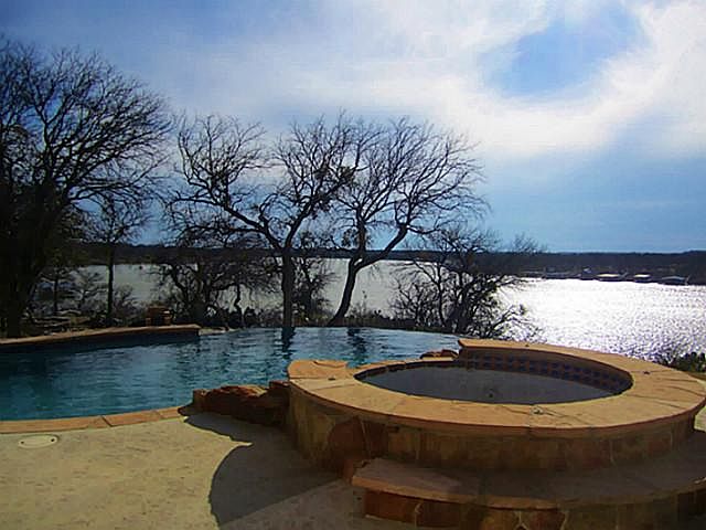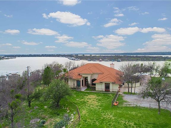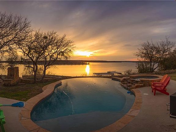 Beautiful custom built waterfront home for the ultimate lake experience! This home offers high end amenities with open concept kitchen, living & dining rooms. Enjoy amazing views of the lake, pool & countryside from the living room-kitchen, master & guest bed room. Easy lake access with rock and trex walkway to the dock. The dock is newly constructed with large boat slip & two jet ski slips (see pictures). This property is located on some of the best water on the lake. The outdoor living area offers a rock fireplace & crushed granite. The wonderful saltwater pool offers an attached spa with infinity edge & newly upgraded mobile cleaning device. The home is secluded & in a gated community just minutes from town.