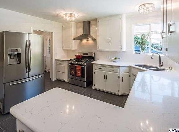 Rare compound on almost an acre of land in the Altadena estate area! Gorgeous new kitchen & baths in the 3 bedroom 2.5 bath main home, 2631 sq. ft. one level ranch. There's a 1+1, 814 sq. ft. pool house & 3 bedroom 2 bath, 1305 sq.ft. guest house (all sq. ft. measured) totaling 4750 sq. ft.!!! Extensive upgrades over the last 5 years. Main house: Kitchen & baths just completed, new roof, gutters, paint in-n-out, HVAC system & ducting, attic insulation, 6 new Anderson windows & 2 new french doors, horizontal copper plumbing, hot water heater, garage doors, main electrical panel, refinished wood floors, new concrete patio & new solar panels in 2015 that lower energy bill, plus a whole-house automation system available too. Pool House: new bath, paint, floors, roof, A/C, water heater, patio, solar & insulation. Guest House: new roof, solar & baths. New pebble tech finish on the pool in 2015 w/ newer equip. Truly a unique opportunity in the best part of Altadena.