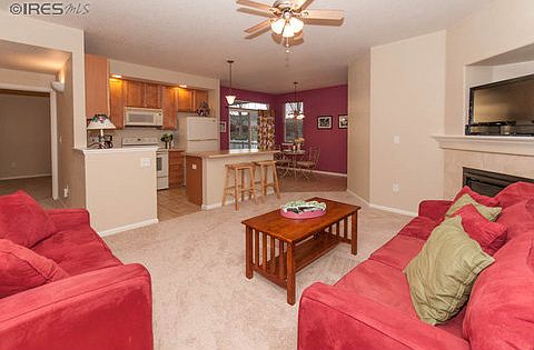 Main level condo in popular High Plains Village! Large fenced yard. Virtually maintenance free. Master bedroom with walk in closet and master bath.Open floor plan. Cozy living room with fireplace.Kitchen complete with island, maple cabinets and private patio.Close to recreational trails, dog park, and community park.