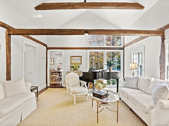 Charming, exquisitely renovated Antique home with cathedral ceilings, large Living Room with wet bar and wine refrigerator, Master Bedroom Suite, Gourmet Kitchen with marble counters located in estate area of Greenfield Hill. Wonderful, setting with professionally landscaped grounds and elegant terraces offers privacy and great entertaining space. Square Footage includes finished loft space Guest Bedroom. Lower finished level includes 670 SF office with fireplace, Playroom and storage.
