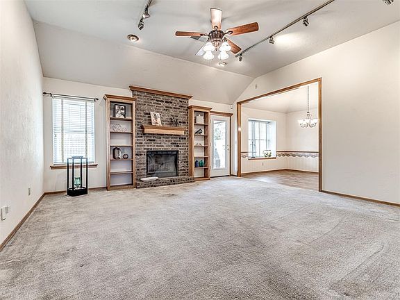 Come see this lovingly maintained home in Choctaw Schools! The well planned layout offers privacy while still feeling open and spacious. The large living room offers a gas fireplace surrounded by bookcases and the roomy kitchen has plenty of storage and a beautiful view of the backyard. The primary suite offers double vanities, whirlpool tub and separate shower. Outside you will find a new roof, gutters and exterior paint, as well as a nice storage building and storm shelter to offer peace of mind during Oklahoma weather. This neighborhood features 2 large ponds, walking trails and playgrounds right around the corner. Close to Tinker and Boeing makes this home as convenient as it is cute! What a value for a move in ready home, just waiting for you to come make your personal touches. Professional pictures coming Thursday afternoon.