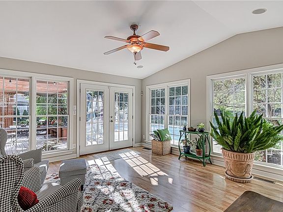 COMPLETELY RENOVATED brick home with low-maintenance saltwater pool and backyard oasis. Large deck, pergola, water feature and mature trees offer a serene feel, perfect for relaxing, outdoor dining and entertaining. Sunroom with full bath just steps from the pool. Flowers and mature landscaping surround the home. Abundant natural light, replacement windows, spacious primary suite with spa-like shower and walk-in closet. Granite countertops, stainless steel appliances, custom cabinetry, soft-close drawers and dual-fuel range in kitchen. Large den with beautiful picture window and wood-burning fireplace. Engineered hardwoods in kitchen, foyer and den. Basketball court in backyard. Natural gas hookup on back deck. Second floor laundry room with cabinetry. Storage space for everything! Close to shopping, restaurants and Oak Hollow Lake. Refrigerator remains. **See VIRTUAL TOUR; floor plan in photos** Come see your new home!