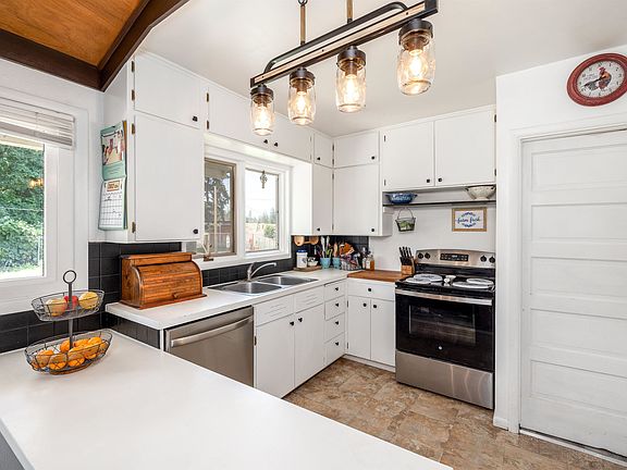 Discover the charm of this delightful 4-bedroom, 2-bath farmhouse-style home on over 6 acres of serene countryside. Full of character, this inviting residence offers a cozy atmosphere. The main floor includes the primary bedroom, a large bedroom, an office, and main floor utilities, with two additional bedrooms and a loft upstairs. Inside, you'll find a new stove and dishwasher, a remodeled bathroom, three new vinyl windows, and four ceiling fans to keep you comfortable. The back deck is perfect for summer evenings and enjoying the peaceful surroundings. Outside, there's a large chicken coop and run, ideal for your feathered friends. The original milk house serves as excellent storage or a charming garden shed. The owners are currently seeding the lawn. A brand-new shop is a standout feature, equipped with a wood stove, A/C unit, and LED lights, perfect for any hobby or project. Conveniently located near the airport, casino, shopping centers, Spokane Community College, and downtown.