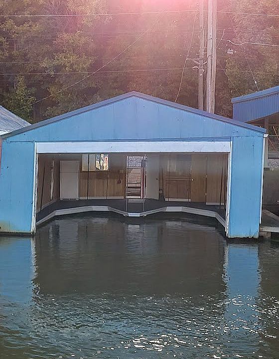 Boathouse located next to KYC. Houses (2) 24ft boats. Many recent updates: garage door, roof, sink, faucet, ceiling fans, carpet, trim. Refrigerator & tv stay. No HOA fees. Monthly electric $22, Yearly Taxes $500.