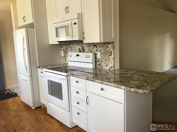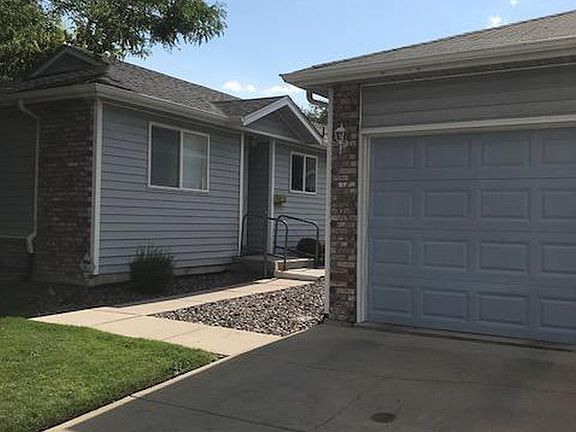 Conveniently located in north Longmont. 2 bed and 2 1/2 bath with partially finished basement; End unit with 1 car garage just steps from your front door; Upgraded KraftMaid kitchen cabinets, granite counter-tops in kitchen and main floor bathrooms. Glass door to private patio. Refrigerator, dishwasher, stove, washer and dryer included. No snow to shovel or grass to mow as HOA covers that.