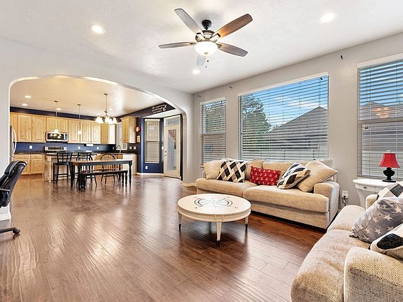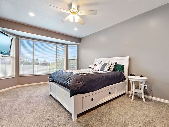 Beautiful rambler located in Hunters Creek in west Farmington. HOA includes pool. Easy access to freeway, Station Park, and Front runner. Recess lighting, granite countertops in large kitchen, stainless steel appliances w/ double oven, 9' ceilings on main level, RV parking, new AC in 2019, new roof in 2018. Main floor windows have privacy tinting. Basement mostly finished & recently completed. Nearby trails and parks, perfect family neighborhood. Fully fenced backyard. Waterfall in front yard.