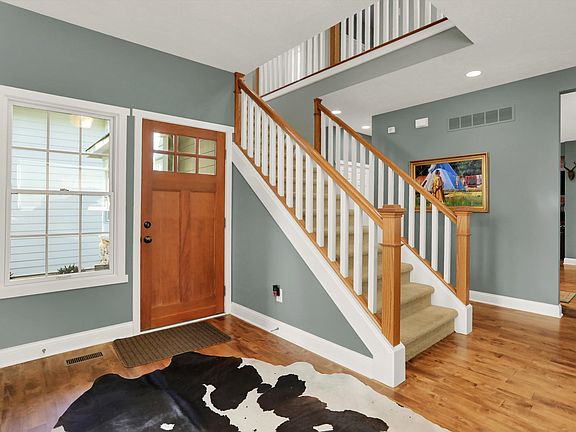 Welcome to 20270 Dayspring Ct, a stunning custom home nestled on 2.2 acres of meticulously landscaped grounds, combining the tranquility of woods with the expansiveness of an open yard. This private retreat is situated at the end of a quiet cul-de-sac, offering a peaceful and secluded living experience. The residence boasts a spacious floor plan with four bedrooms and three-and-a-half bathrooms, providing ample space for comfortable living. With 2,800 square feet of living area, every room is thoughtfully designed to maximize both form and function. The heart of this home is the Great Room, featuring a spectacular river rock fireplace that adds warmth and charm. This inviting space is perfect for gathering with family and friends, creating lasting memories against the backdrop of this unique and stylish focal point. The property includes a three-car attached garage and a separate two-car detached garage with additional storage space, catering to both convenience and practicality. Whether you're an avid hobbyist or simply need extra space for vehicles and equipment, this property has you covered. Don't miss your chance to own this exceptional home in Noblesville, IN - a perfect balance of luxury, functionality, and natural beauty. Schedule your private showing today and experience the enchanting ambiance of this custom home.