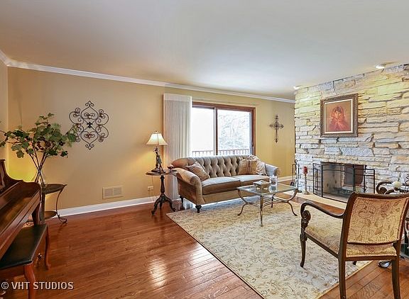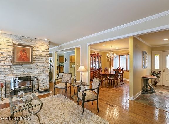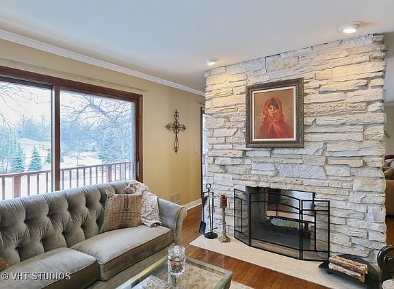 Immaculate cedar & stone 3 bedroom ranch w/open floor plan & wrap around cedar deck. Freshly painted, new trim; custom drapes, HW floors, updated eat in kit w/granite, SS appliances & large breakfast bar; 2-sided stone FP; multiple sliders to deck. Enormous full English basement w/ FP, exterior access and plumbing rough-in. 3+ car garage. Just a short walk to parks & lake! New roof & water heater 2014, new AC 2012