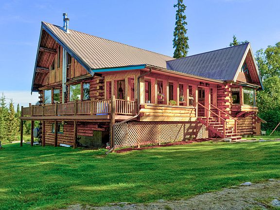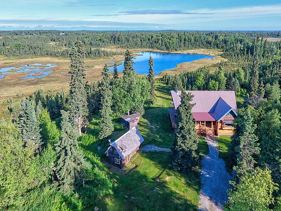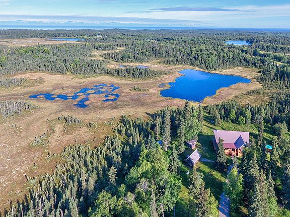 Over 3,000 square foot custom log home on 26 acres! Enjoy views of Mt Redoubt volcano and your very own private 3acre lake from your deck. This is a rare chance to own a large, very private property with a beautifully crafted, spacious 3 bedroom home in the country, yet 25 minutes from Soldotna. Handcrafted woodwork and rock work. Berries, cranes, moose and wildlife galore. Home warranty included.